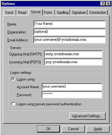 These instructions are intended to help our customers who are running Internet Mail configure their software to be able to use there Email with us.