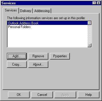 6) After selecting Properties, on the Services tab enter your account info as shown below